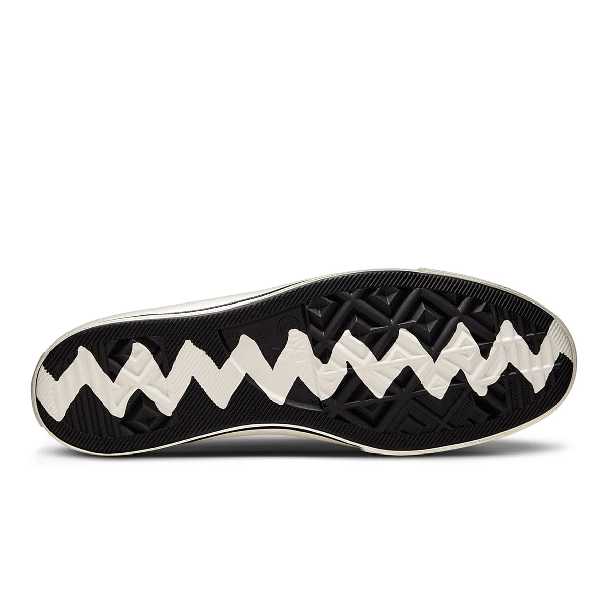Two pillars of classic Americana combine to create a refreshing taking on the Chuck 70. Honoring the Peanuts’ soft spoken, mischievous bird creature thing, there is nothing quiet about this all over camo, which features an army of the little fella with his signature, all too relatable, confused expression.Â