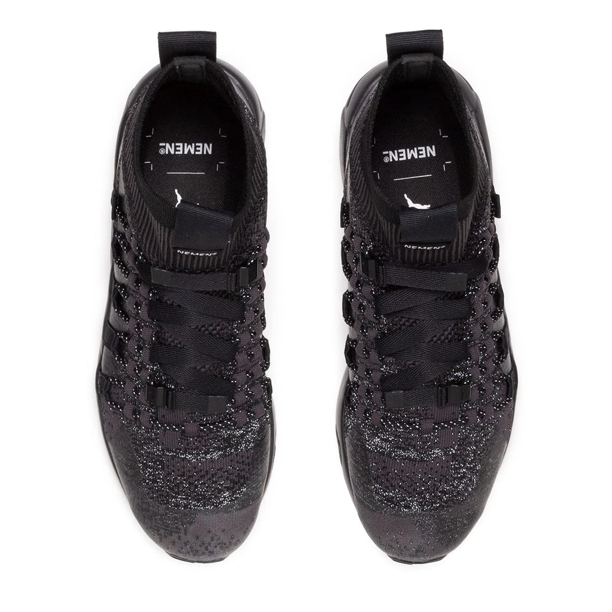 Puma and NEMEN emerge from the think tank with a transformed Blaze of Glory, turning the lifestyle silhouette into futuristic runner. Known for its technical designs, Italy’s NEMEN makes full use of a knit sock upper and bungee and with web belt-like speed lacing system. Finished with front and back heel pulls and PUMA’s signature Trinomic cushioning system, all you need to do is slip them on and settle in for all day comfort in an elevated package.Â